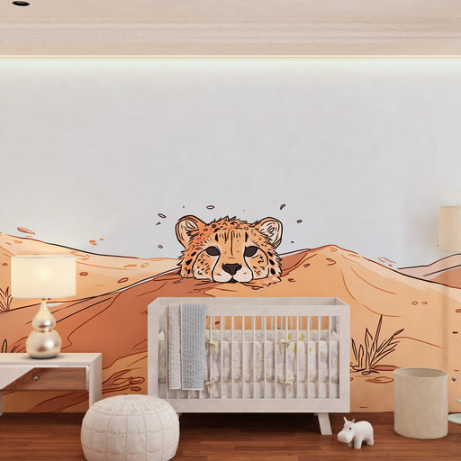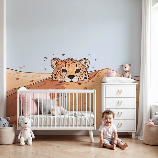 View full detailsKids room wallpaper | Little tiger playing in the desert