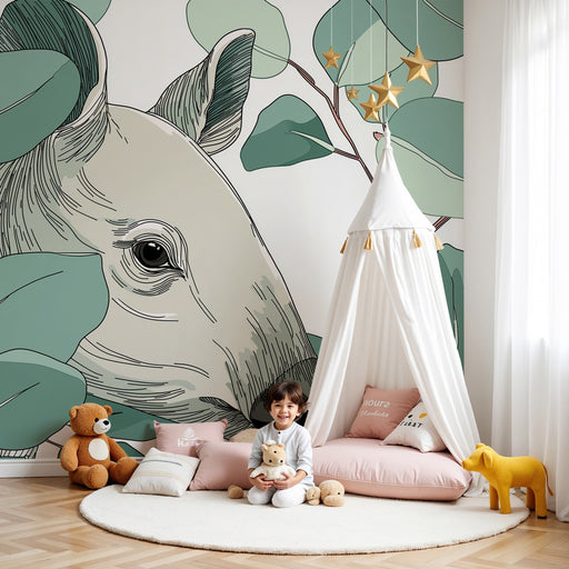 View full detailsKids room wallpaper | Elephant elegance and soothing foliage