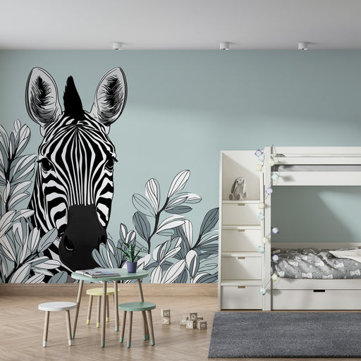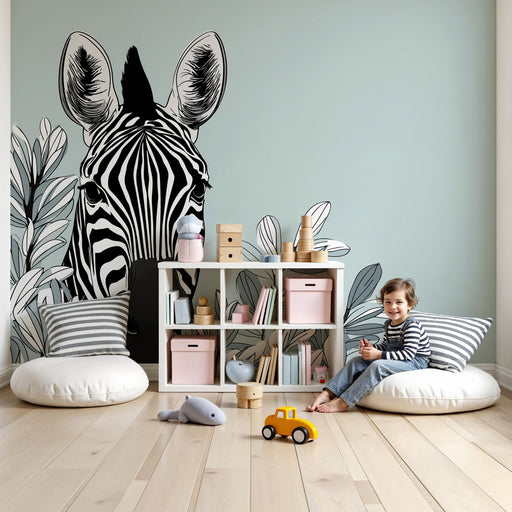 KidsWallTransform your child's room into a fascinating place with this kids room wallpaper featuring a majestic zebra head surrounded by delicate foliage. ...
