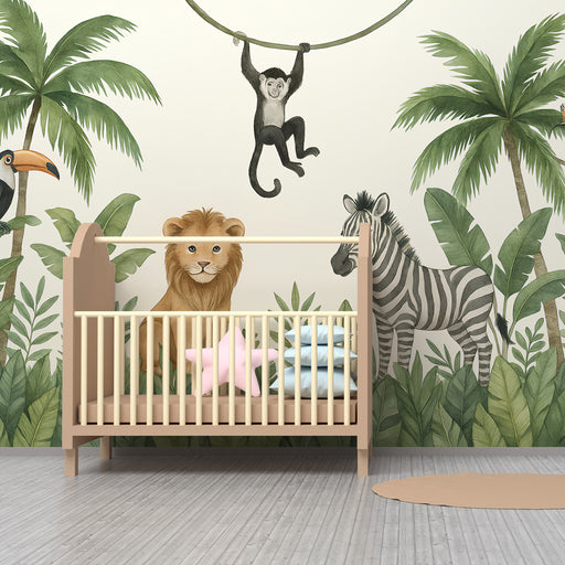 View full detailsKids room wallpaper | Jungle animals on a wild adventure