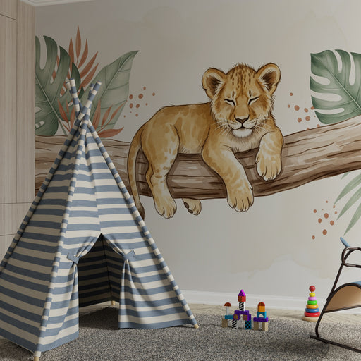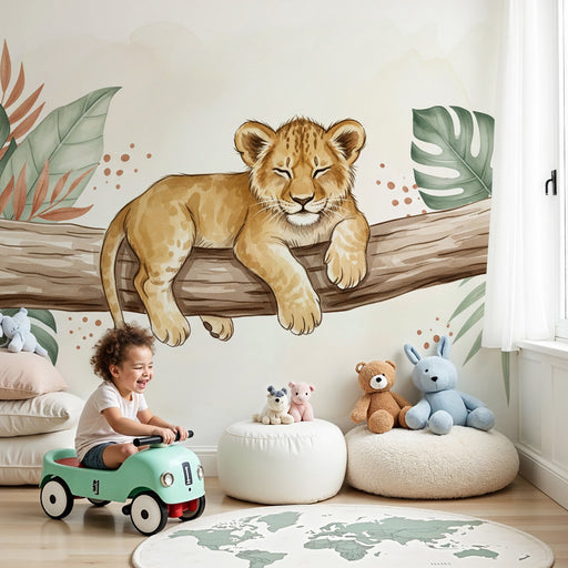 KidsWallTransform your child's room into a true wild paradise with this kids wallpaper featuring an adorable baby lion lounging on a branch. Surrounded by ...