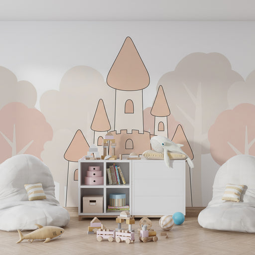 KidsWallTransform your child's room into a magical universe with this kids room wallpaper depicting a majestic castle surrounded by gentle trees. Pastel sh...