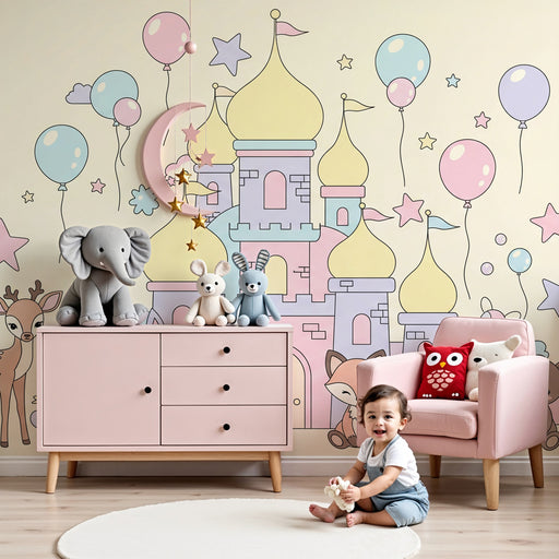 KidsWallTransform your child's room into a real kingdom of dreams with this kids room wallpaper featuring an adorable pastel castle. The soft shades of pin...