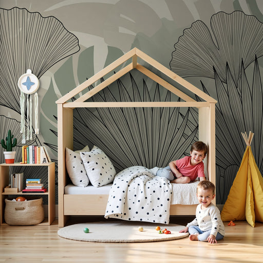 KidsWallTransform your child's room into a sanctuary of peace with this nature-inspired wallpaper. The delicate tropical leaves, carefully drawn, bring to ...
