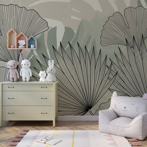 KidsWallRedecorate your child's room with this kids room wallpaper featuring stylized tropical leaf motifs. The delicate lines and neutral colors create a ...