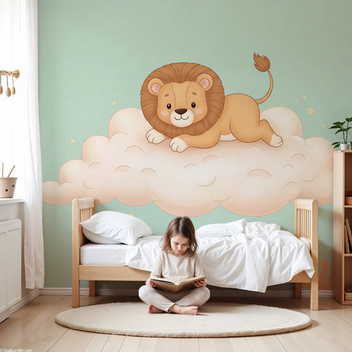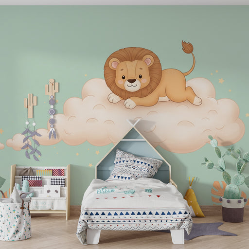 View full detailsKids room wallpaper | Cuddly lion on a cloud