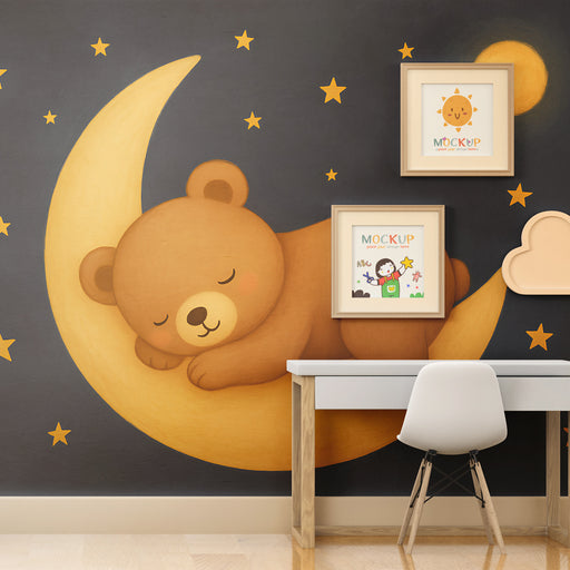 View full detailsKids room wallpaper | Sleeping bear on the moon