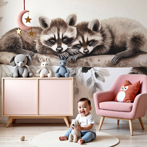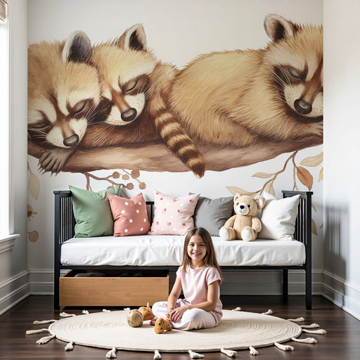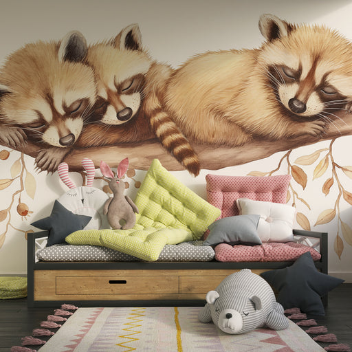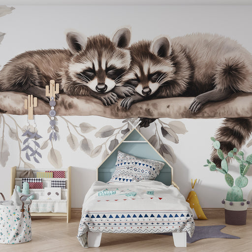 KidsWallTransform your child's room into a dreamy space with this kids room wallpaper featuring two adorable raccoons peacefully sleeping on a branch. Thei...