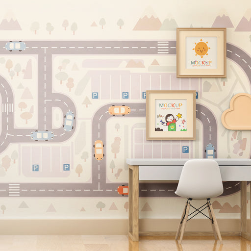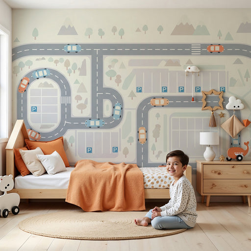 KidsWallTransform your child's room into a real racing world with this kids room wallpaper featuring a colorful car track. The little cars intertwine on a ...
