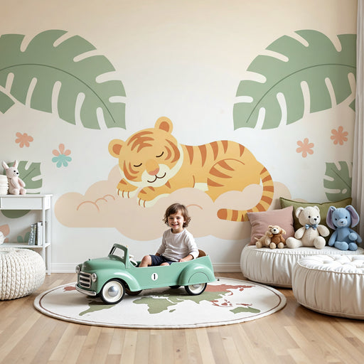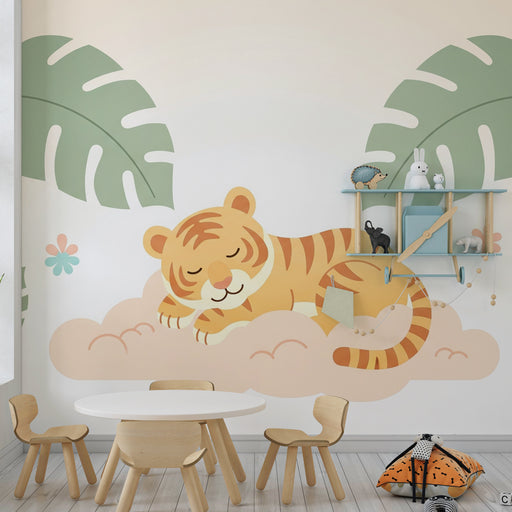 KidsWallCreate a calm and soothing atmosphere in your child's room with this kids room wallpaper featuring an adorable sleeping tiger. Lying on a fluffy cl...