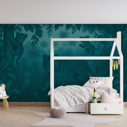 KidsWallImmerse yourself in the fascinating world of the jungle with this kids room wallpaper featuring a majestic tiger and its adorable cubs. In a lush s...