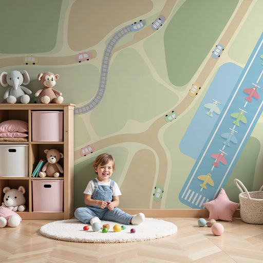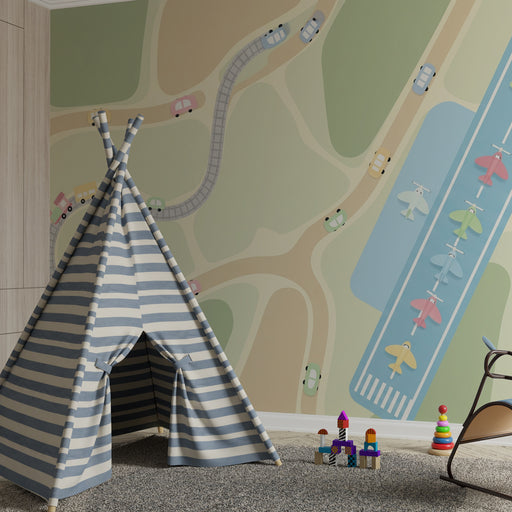 KidsWallTransform your child's room into a playful world of adventures with this kids room wallpaper inspired by the theme of transportation. On a soothing...