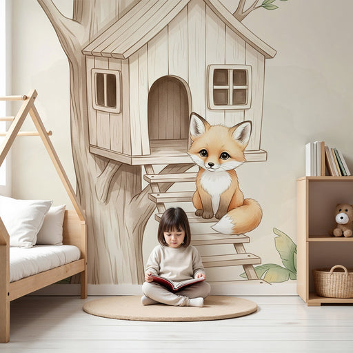 KidsWallTransform your child's room into a true paradise with this kids room wallpaper featuring an adorable fox in front of his tree house. This enchantin...