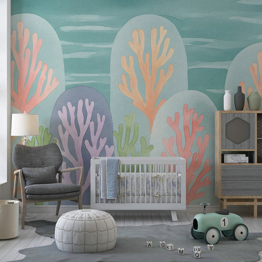 View full detailsKids room wallpaper | Peaceful underwater beach with corals