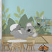 Renew your baby's room into a cute cocoon with this nursery room wallpaper featuring an adorable koala. Peacefully lying on a carpet, this little marsupial is surrounded by delicate leaves that bring a touch of nature and softness to the space.