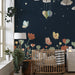 Transform your baby's room into a space of tranquility with this nursery room wallpaper inspired by a nocturnal garden. Delicate flowers in soft shades of pink, red, and green bloom under a starry sky, creating a magical and soothing atmosphere.