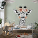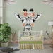 The delicate roses and stylized leaves surrounding it create a floral and warm atmosphere, perfect for stimulating the imagination of little ones. Every detail, from the giraffe's fine features to the pastel shades of the flowers, is carefully designed to bring a soft and welcoming atmosphere.