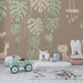 Nursery room wallpaper | Soft jungle with animals and foliage