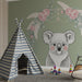 The koala, with its charming smile and rosy cheeks, is showcased against a soft green background, while roses and leaves adorn the top of the wall, adding a touch of nature and serenity. Every detail is carefully drawn to capture your child's imagination and stimulate their sense of wonder.