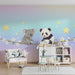 Transform your baby's room into an enchanting universe with this nursery room wallpaper featuring an adorable koala and panda, hanging from a flowery branch. The two friends, surrounded by sparkling stars, create a soft and dreamy atmosphere, perfect for soothing your little one's nights.