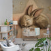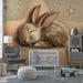 Nursery room wallpaper | Sleepy rabbit on a golden star