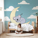 Nursery room wallpaper | Sleeping koala on a soft moon