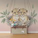 Create a soft and soothing environment for your baby with this nursery room wallpaper featuring two adorable lion cubs cuddled in a nest. Their curious gaze and golden fur add a touch of tenderness to the decor.