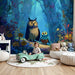 Bleu Bébé Chouette Floral Forêt enchantée Kw202505243