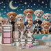 Add a touch of whimsy and sweetness to your child's room with our puppies and starry sky wallpaper. This enchanting design features an adorable row of puppies surrounded by a nighttime sky filled with stars and moons, creating a dreamy and magical atmosphere.