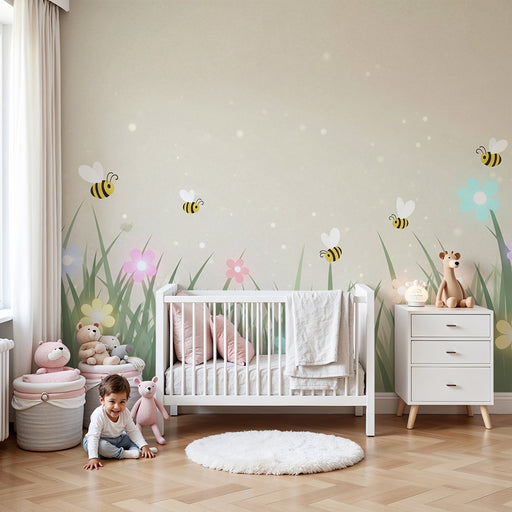 KidsWallTransform your baby's room into a sweet garden with this nursery room wallpaper with enchanting patterns. Happy bees fly among colorful flowers, cr...
