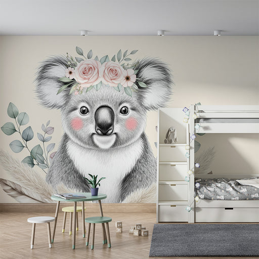 KidsWallEnhance your baby's room with this nursery room wallpaper featuring an adorable koala adorned with a flower crown. This charming and soothing desig...