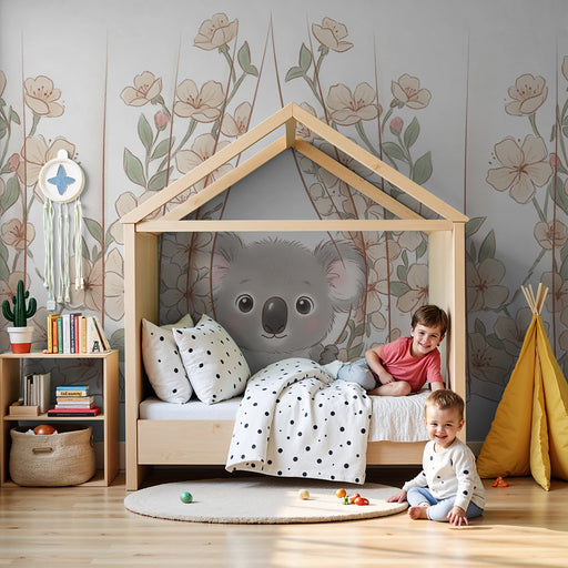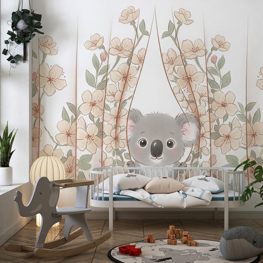 View full detailsNursery room wallpaper | Curious koala and delicate flowers
