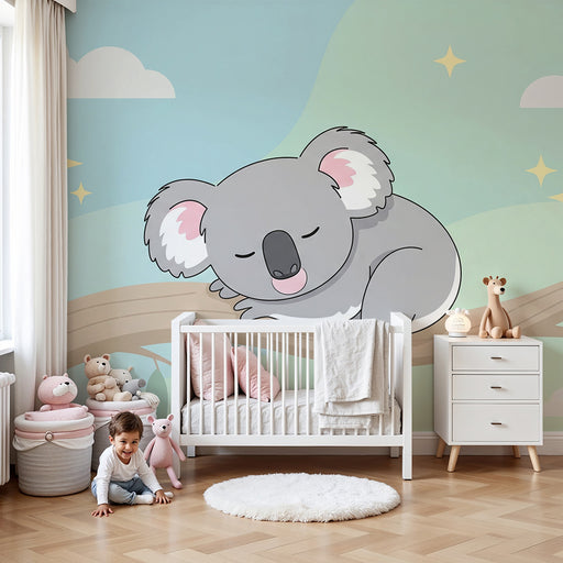 KidsWallTransform your baby's room into a cocoon of softness with this nursery room wallpaper depicting an adorable koala sleeping on a cloud. Surrounded b...