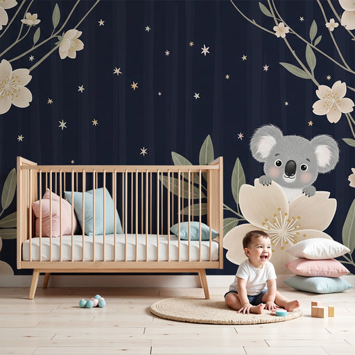 KidsWallTransform your baby's room into a real starry sky with this charming nursery room wallpaper. In the center, an adorable koala with big sparkling ey...