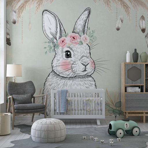 KidsWallEnhance your baby's room with this nursery room wallpaper featuring an adorable rabbit adorned with a crown of flowers. This enchanting design, wit...