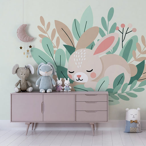 View full detailsNursery room wallpaper | Sleeping bunny surrounded by soft foliage
