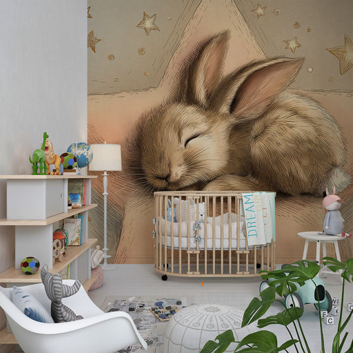 KidsWallTransform your baby's room into a sweet cocoon with this nursery room wallpaper featuring an adorable sleeping rabbit on a star-shaped cloud. In a ...