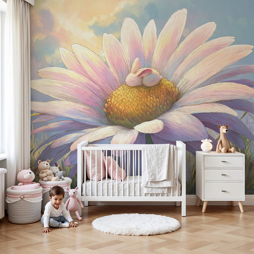 KidsWallTransform your baby's room into an enchanted garden with this nursery room wallpaper featuring an adorable sleeping rabbit surrounded by vibrant fl...
