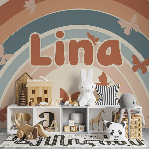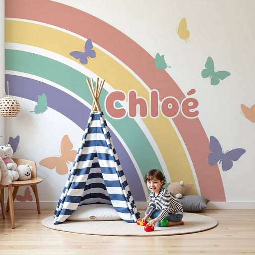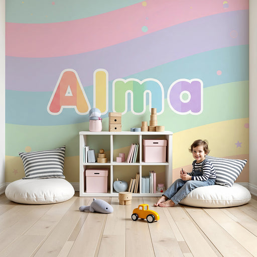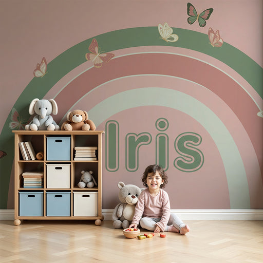View full detailsNursery room wallpaper | Pastel rainbow with the name Iris