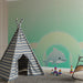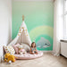 The soft shades of green and colorful arcs in the background bring a touch of freshness and cheer to your baby's room. Every detail, from the round bubbles, is designed to stimulate imagination while providing a relaxing setting for sleep and play.