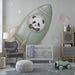 Nursery room wallpaper | Rocket and panda astronaut in space