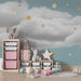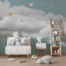 Nursery room wallpaper | Sparkling stars on a cloud background