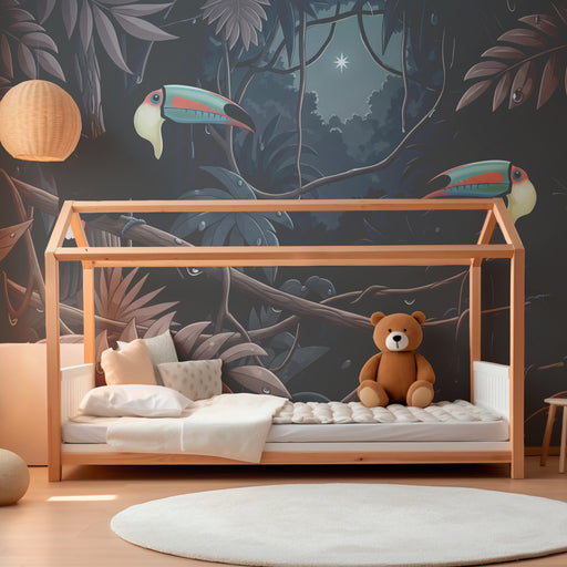 KidsWallDive into the heart of an elegant and mysterious jungle, where majestic toucans delicately perch on intertwined branches. This kids room wallpaper ...