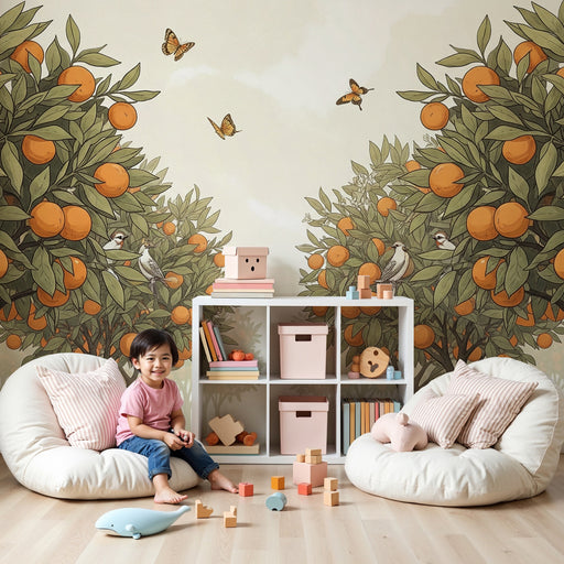 KidsWallTransform your child's room into a real orchard with this enchanting wallpaper depicting orange trees laden with juicy fruits. The majestic trees, ...