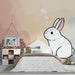 The soft shades of pink, blue, and cream blend harmoniously, bringing a touch of serenity to the space. Every detail, from the dreamy gaze of the rabbit to the delicate floral patterns, is designed to stimulate the imagination and promote a peaceful environment for your little one.