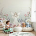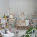 Transform the nursery room into a real fairy garden with this nursery room wallpaper. At the center of this decor, a graceful fairy, dressed in a light dress, seems to dance among a bouquet of pastel roses and lavender, creating a magical and soothing atmosphere.