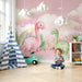 Transform your child's room into a fantastic world with our dinosaur wallpaper in a pastel design. This enchanting decor features two adorable dinosaurs in a lush setting, surrounded by fluffy clouds and lush vegetation in shades of pink and green.