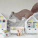 Kids room wallpaper | Playful squirrel in a stylized landscape