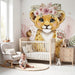 Add a touch of softness and nature to your child's room with this kids room wallpaper featuring a charming young leopard. This little companion with big sparkling eyes and golden fur is adorned with a delicate flower crown, bringing a joyful and lively atmosphere.