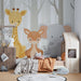 Nursery room wallpaper | Cute forest animals with giraffe, fawn, and elephant